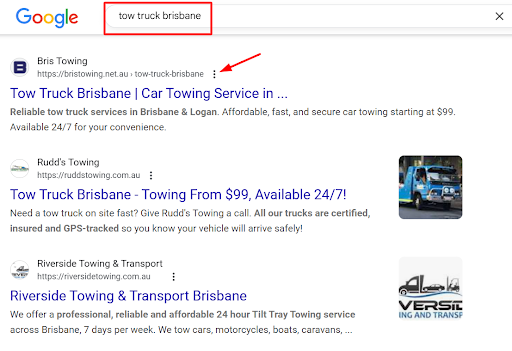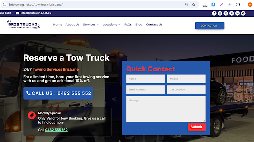 1. Keyword Research & Targeting – Identified high-intent, location-specific keywords such as tow truck Brisbane, emergency towing Brisbane, car towing services near me, ,cheap towing service Brisbane and local machinery towing.