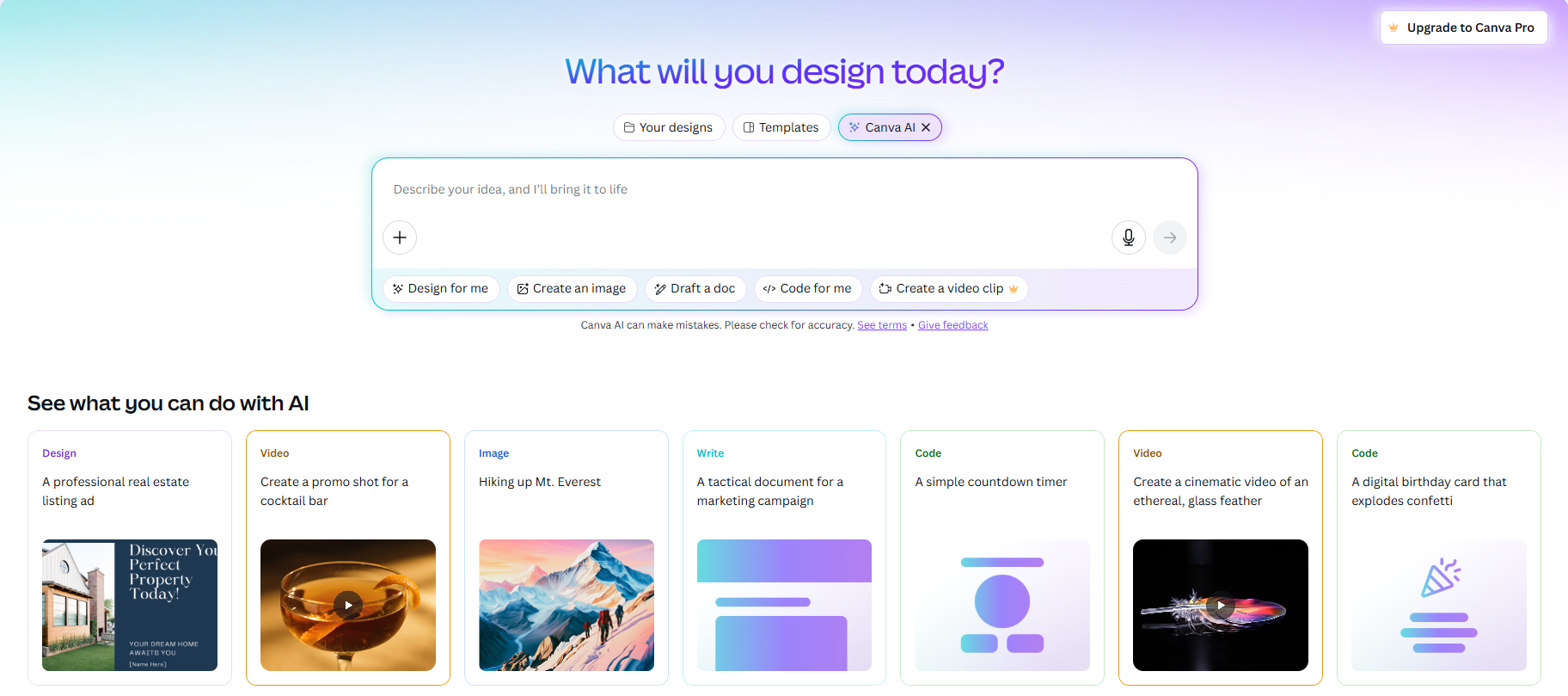 Canva has long been a favourite among designers, but in 2025 it stepped up with Magic Design and integration of AI models like Claude. With just a text prompt, you can now generate ready-to-use designs for social media posts, presentations and marketing materials.