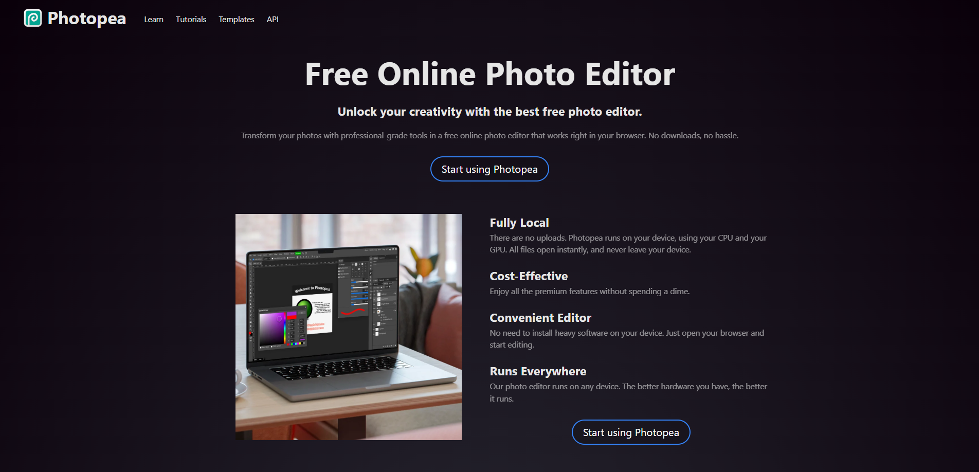 A true Photoshop alternative, Photopea runs directly in your browser and supports PSD, AI, Sketch and XD files. It’s free and perfect for designers who need advanced editing without expensive subscriptions.