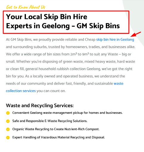 3. Local SEO & Ranking – Improve visibility on Google for location-based keywords such as "skip bin hire Geelong" and "cheap skip bins near me".